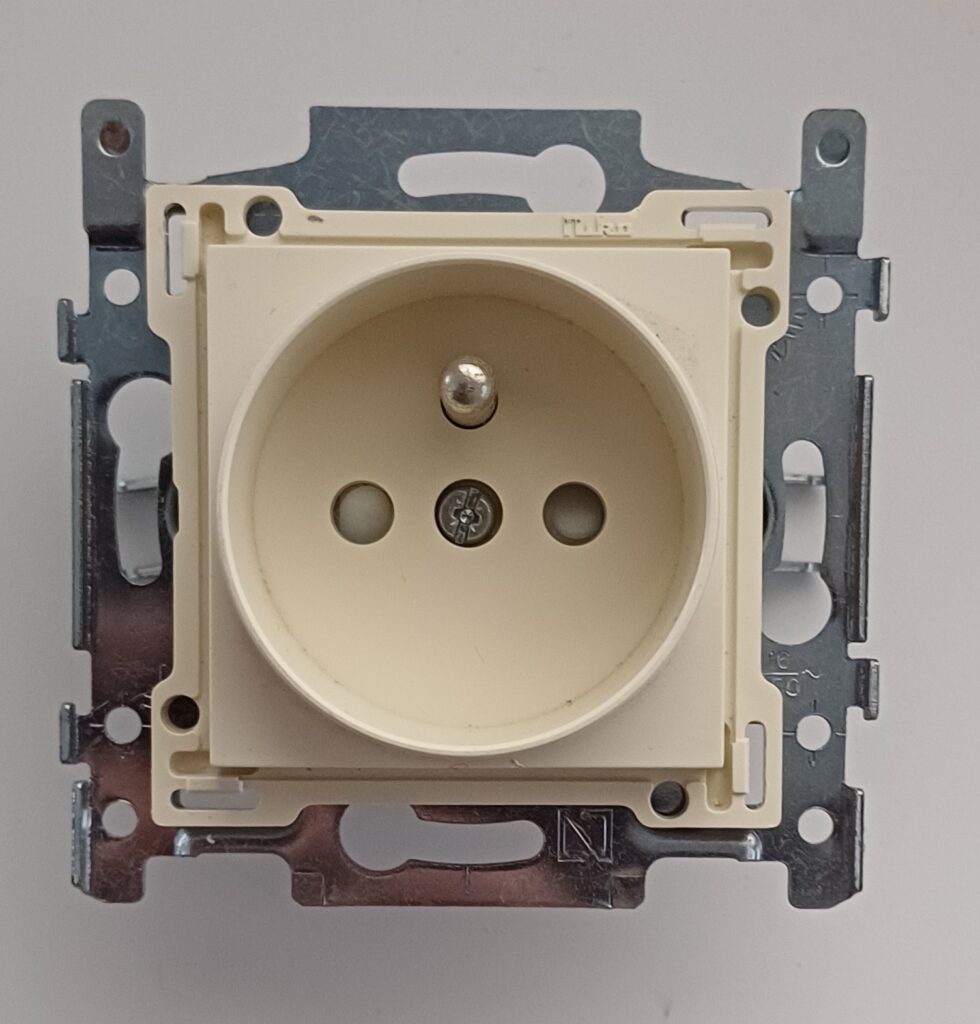 Omschrijving: stopcontact met penaarding en kinderveiligheid, inbouwdiepte 21mm